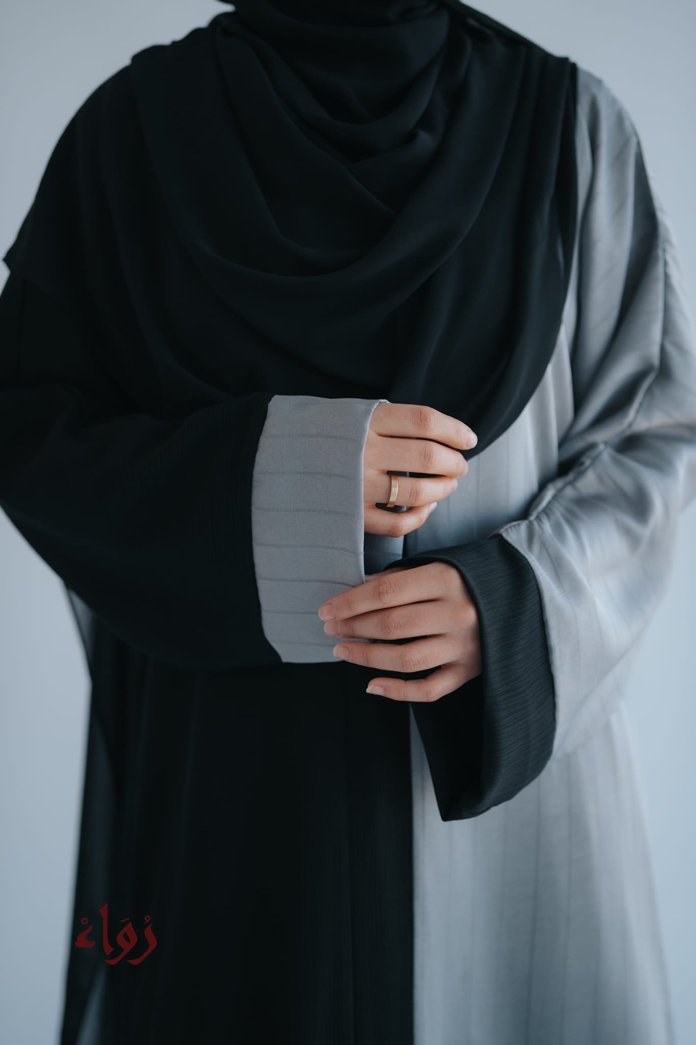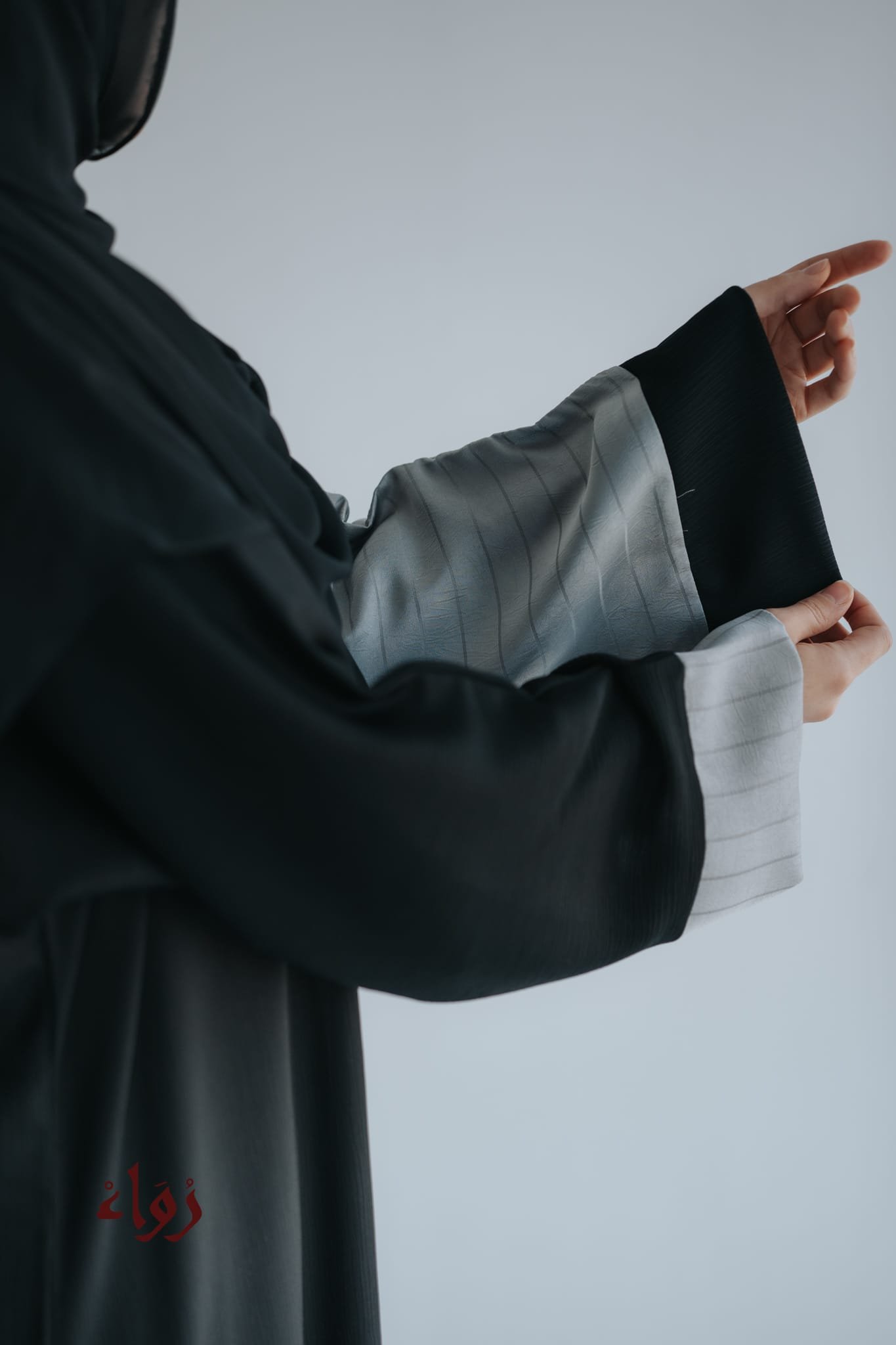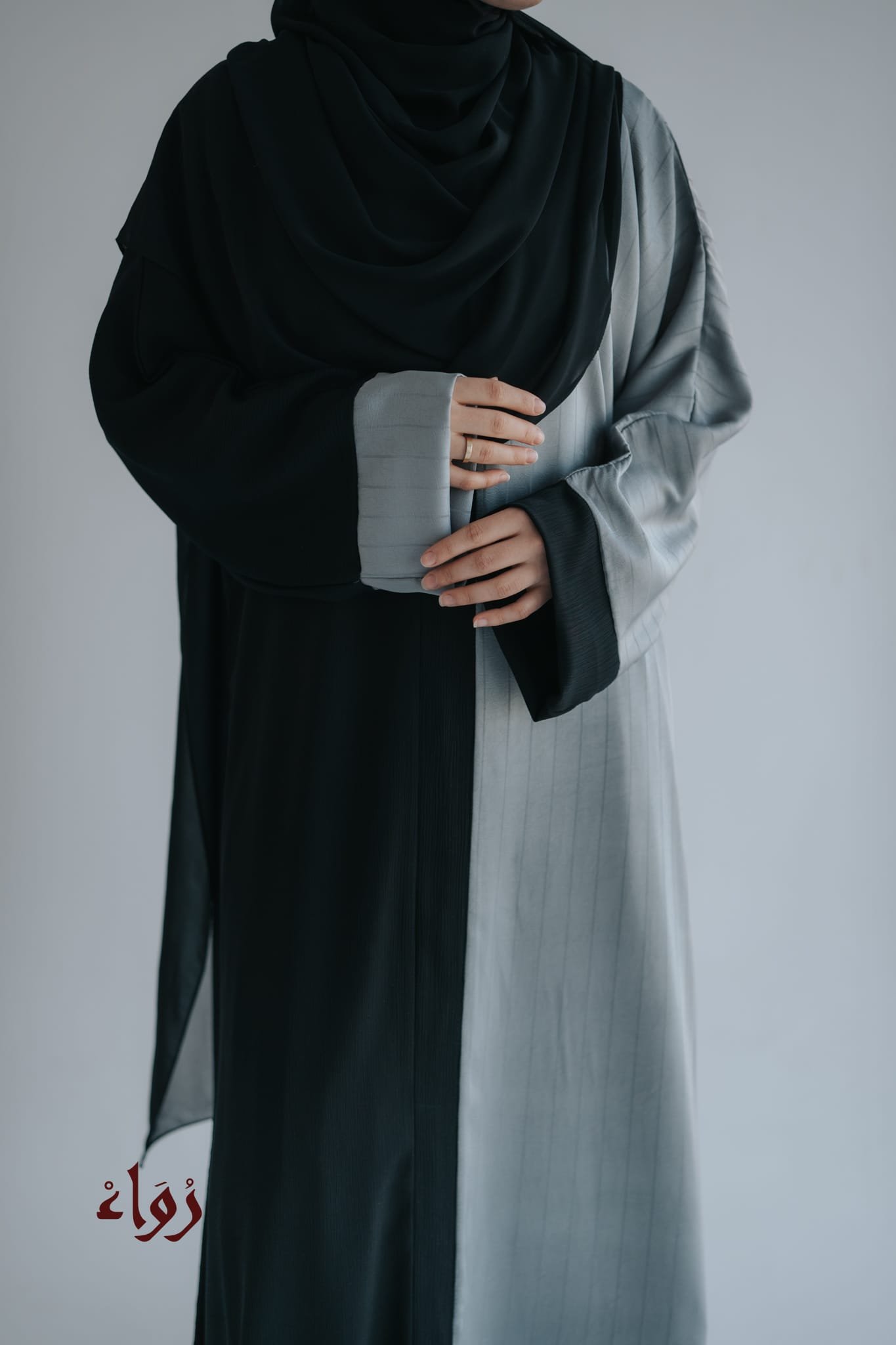 ‏‪عباية مميزة بتصميم نصين عصري يجمع بين الحرير الأسود الفخم ولمسة ألوان جذابة بتدي شكل مختلف وأنيق.