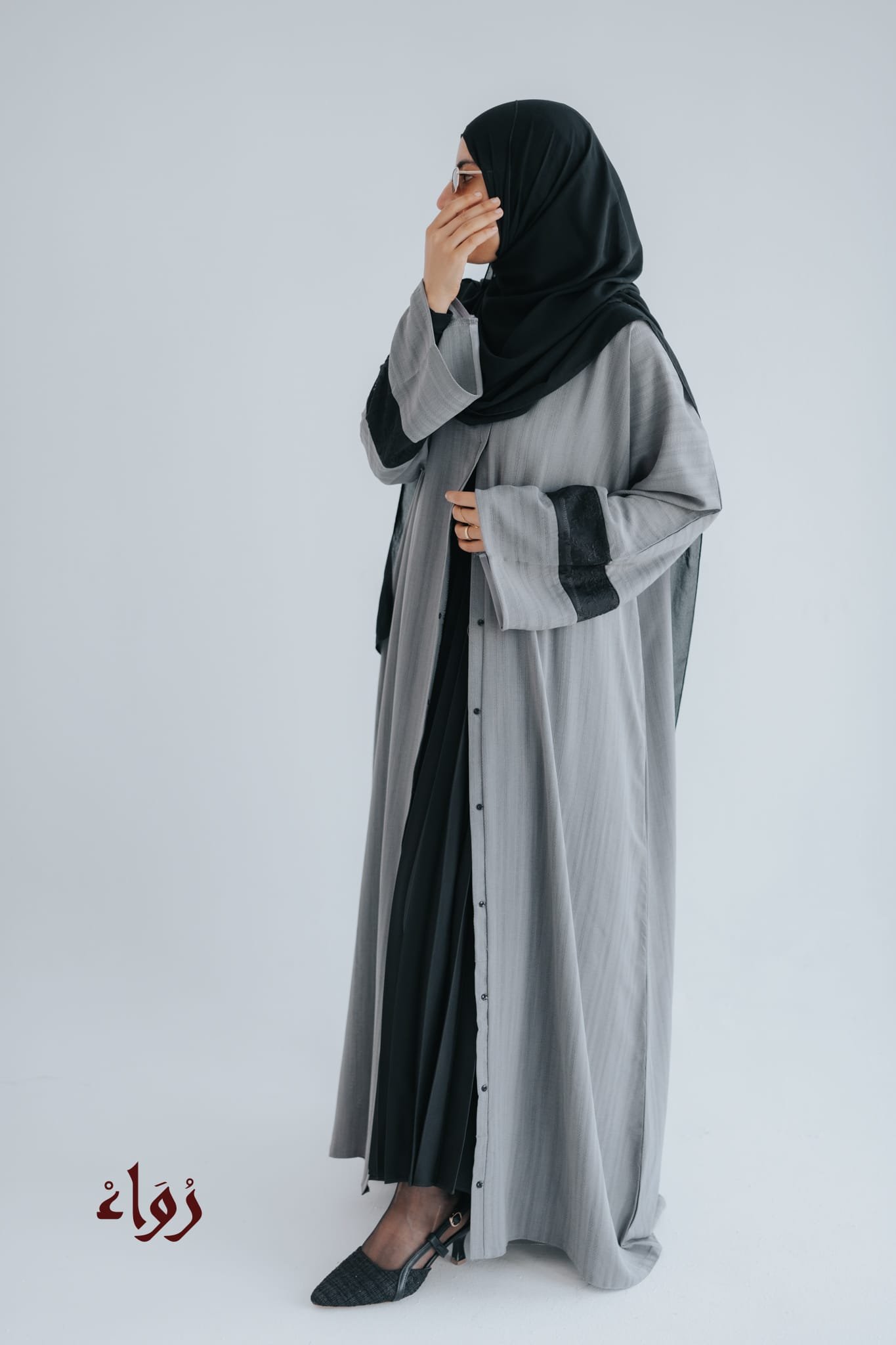 عباية ناعمة خامتها مريحة الكم مزين بأورجانزا شفافة بتدي لمسة وأنيقة بتتقفل بكباسين من الأمام لتسهيل اللبس والتحكم في لبسها باكثر من طريقة تصميمها عملي وكلاسيك يناسب الخروجات والمناسبات على حد سواء.